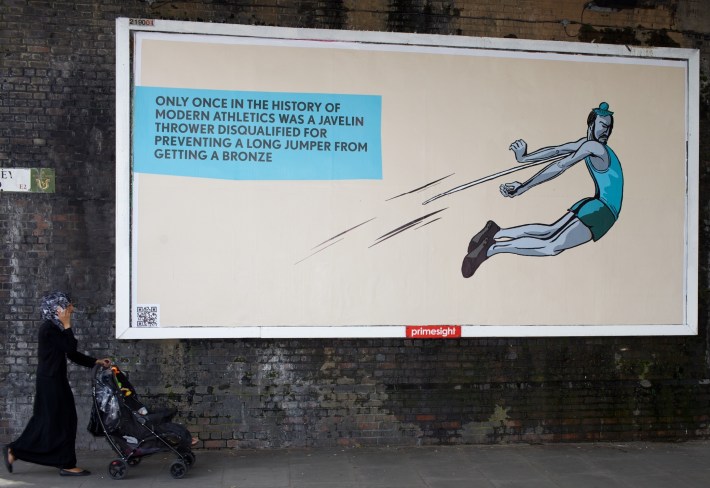 Sarnath’s most recent piece was a site-specific work for the London Olympics, curated by the Frieze Foundation. Titled “The Gallery of Losers,” the project sought to challenge the idolization of multi-medalled Olympic athletes and present the characters in competitive sport who everyone forgets—the non-achievers, the almost winners. His fictional losers (like a punch-fearing boxer and an existential pole-vaulter) were displayed on billboards and in newspapers in east London. He’s now working with the concept of the “unheimlich” to write an alternative history of the city of Bombay.